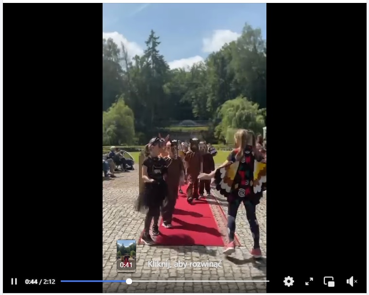 Kulminacyjnym punktem programu był leśny pokaz mody, w którym wzięły udział dzieci z przedszkola ,,Pod Jarzębinką”. Małe modelki i modele zaprezentowali maski i stroje inspirowane światem zwierząt.