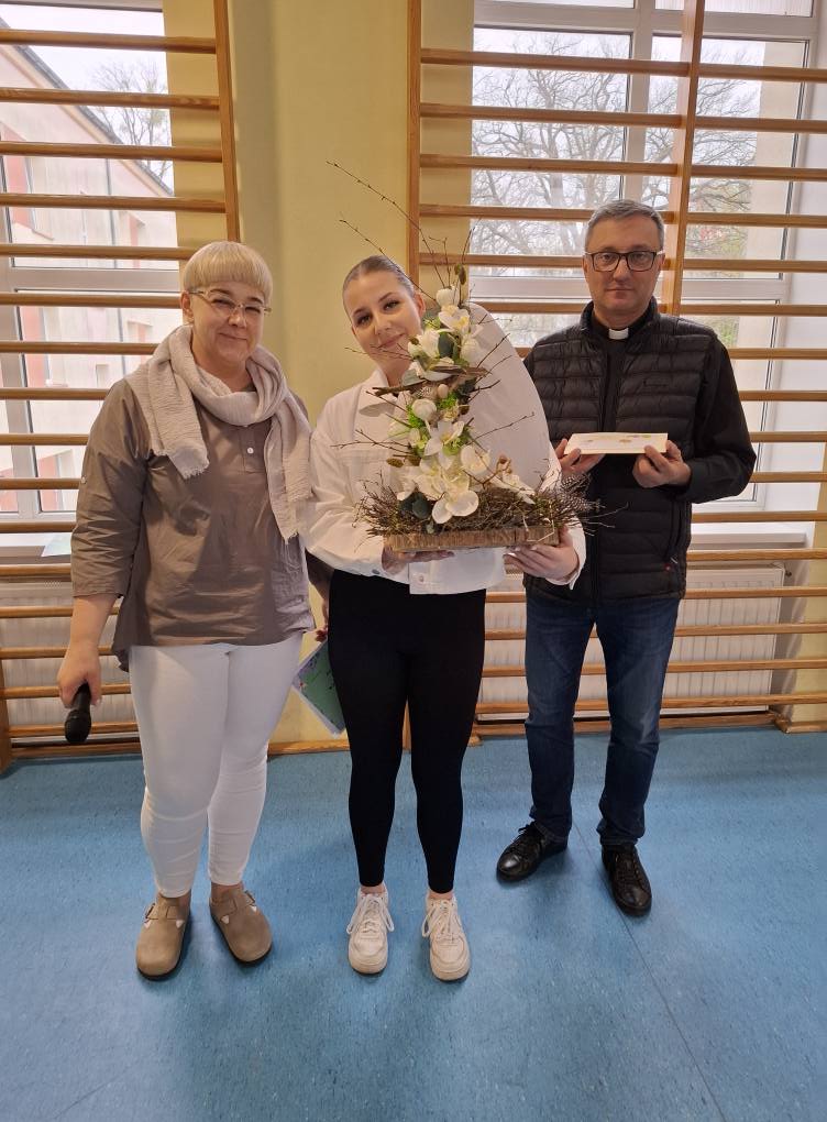 Społeczność szkolna, oddając swoje głosy, wyróżniła dwie prace w obu kategoriach. Wyróżniono pisankę Darii Rotuskiej oraz stroik Marty Lubasińskiej.