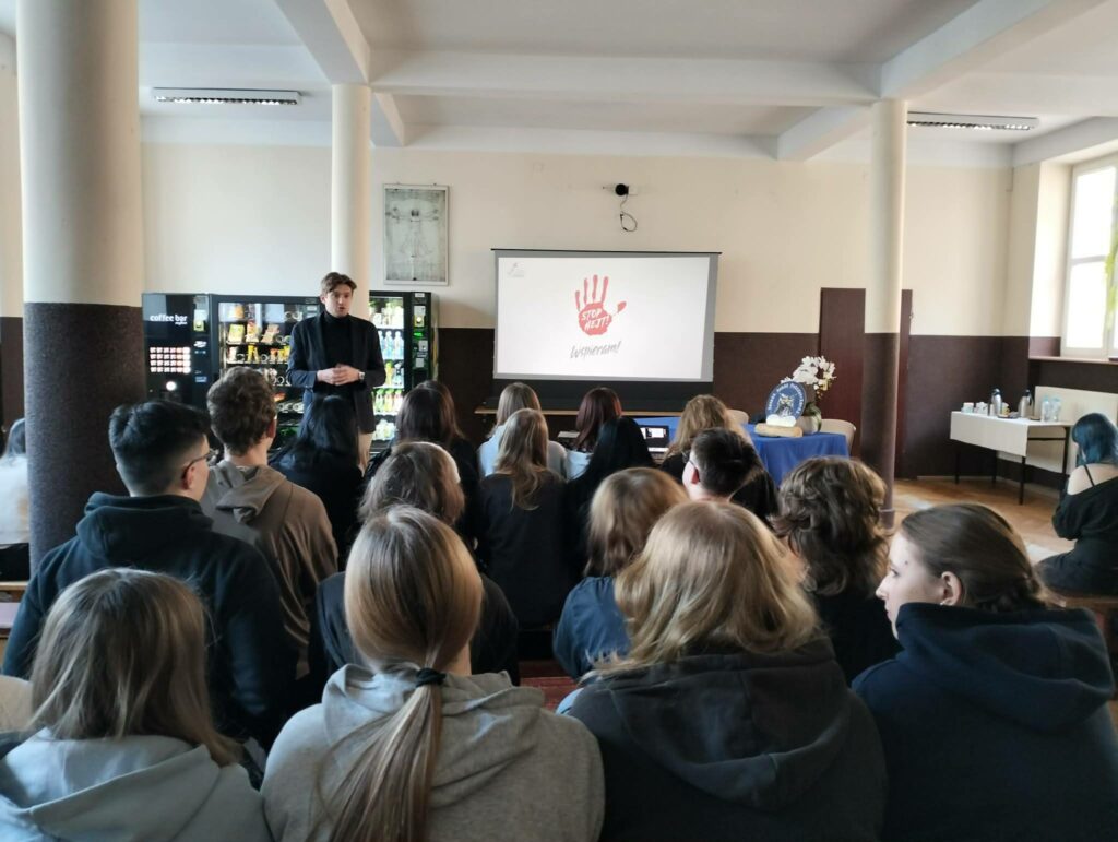 Dnia 21 kwietnia 2026 r. w naszej szkole odbyły się warsztaty profilaktyczne dla uczniów, które poprowadził przedstawiciel ogólnopolskiej akcji „STOP HEJT! Wspieram” – pan Alex Majewski.