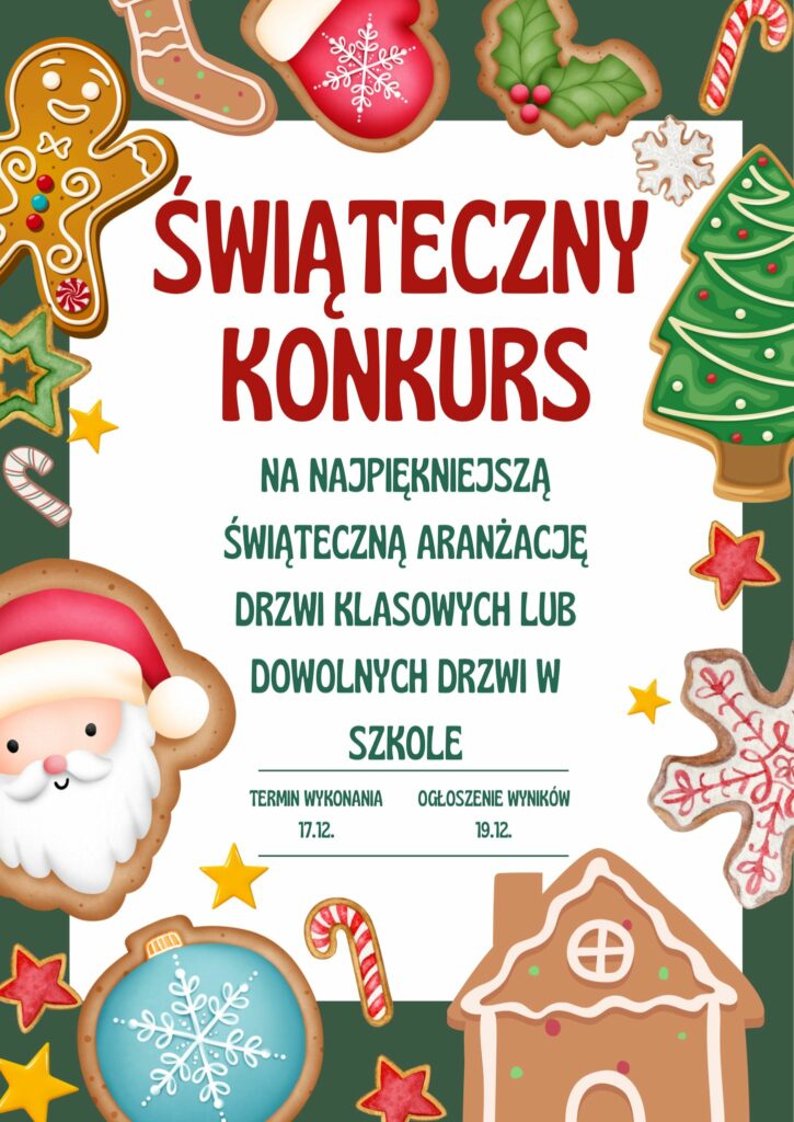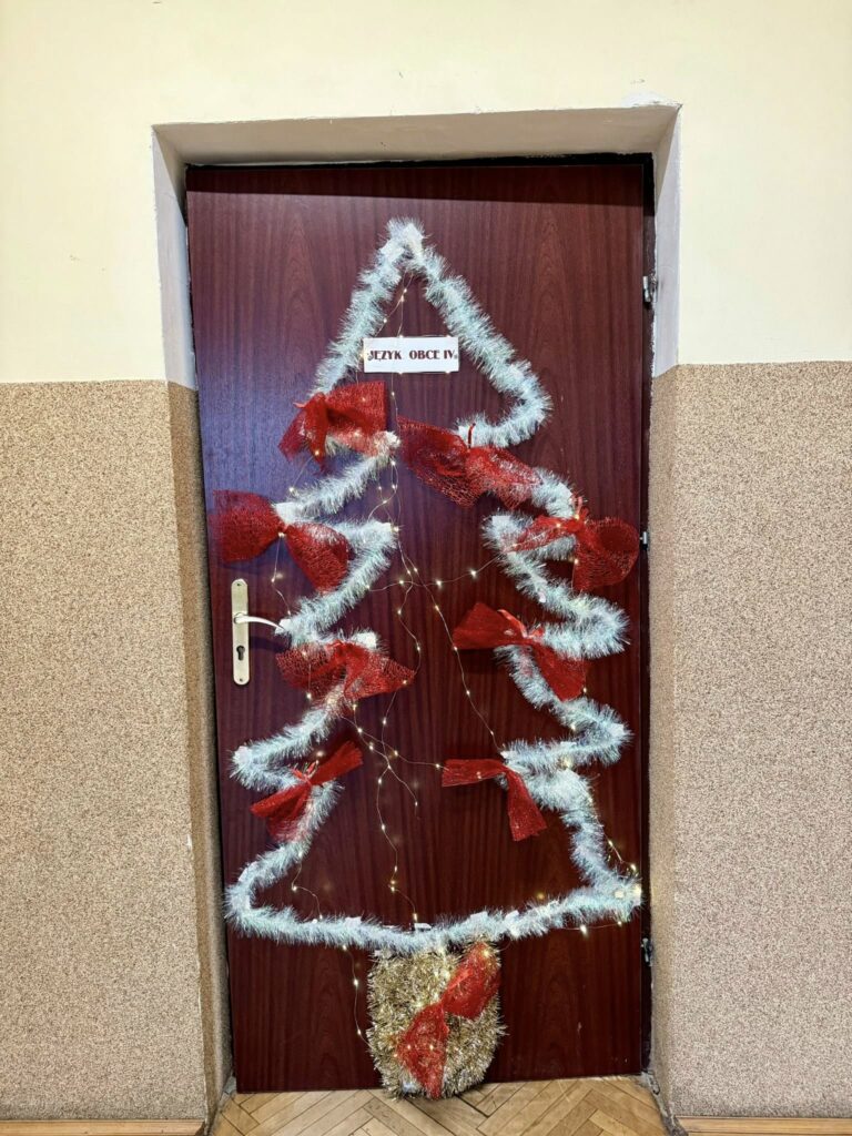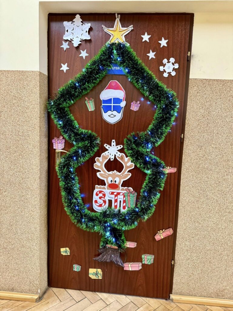 Już kolejny rok Samorząd Uczniowski ogłosił konkurs na najpiękniejszą aranżację drzwi klasowych. Uczniowie z dużym zaangażowaniem i kreatywnością przygotowali świąteczne dekoracje, wykazując się pomysłowością, współpracą oraz dbałością o estetykę. Kolorowe ozdoby, ręcznie wykonane elementy i oryginalne pomysły sprawiły, że szkolne korytarze nabrały wyjątkowego, bożonarodzeniowego klimatu.
