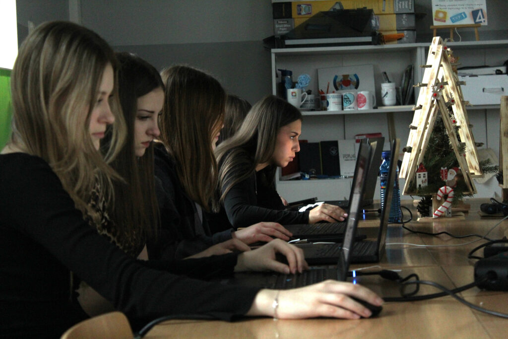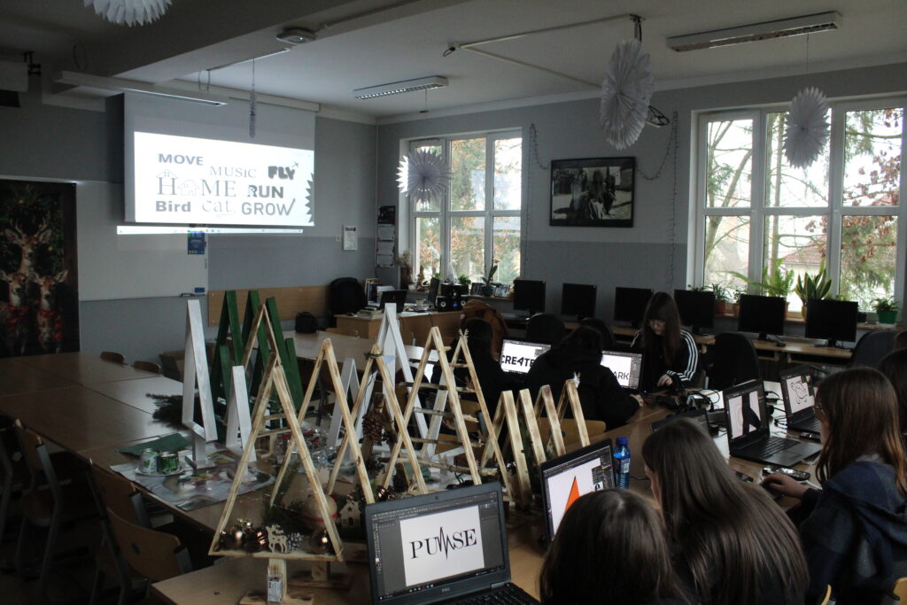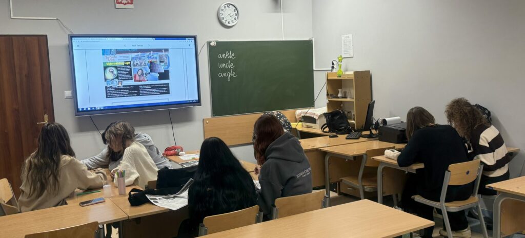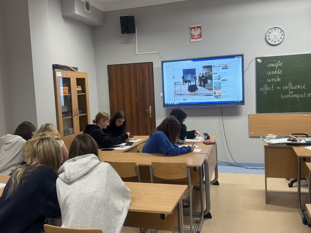 Istotnym elementem projektu są również zajęcia z języka angielskiego, ukierunkowane na rozwijanie kompetencji komunikacyjnych, w tym słownictwa zawodowego z zakresu IT i reklamy i mediów, co zwiększa szanse uczniów na rynku pracy i ułatwia funkcjonowanie w środowisku międzynarodowym. Na zajęciach ćwiczymy sprawności językowe, umiejętności pisania, czytania i mówienia, ale również świetnie się bawimy. Korzystamy z kart konwersacyjnych oraz gier typu: kalambury czy Scrabble. W nowym roku przetestujemy inne gry towarzyskie, które wymagają użycia języka angielskiego, np. Articulate, HerdMentality, Taboo i inne.