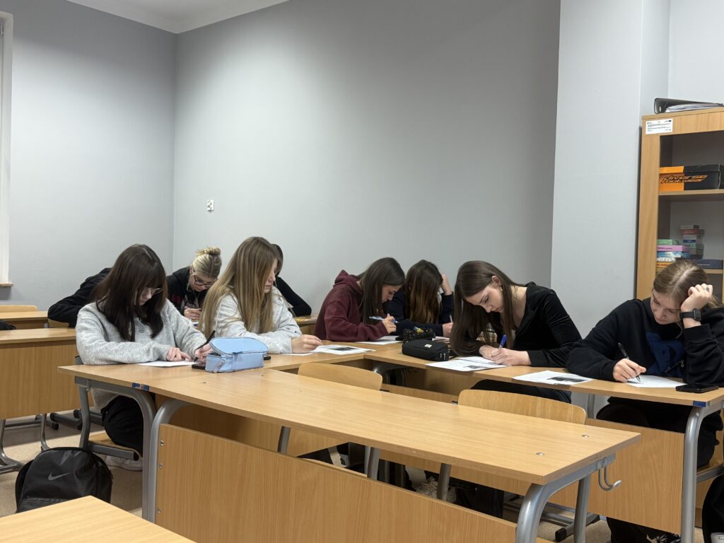 W kolejnych tygodniach zajęcia przybrały bardziej kreatywny i projektowy charakter. Uczniowie realizują zadania rozwijające wyobraźnię, wrażliwość estetyczną oraz umiejętność świadomego operowania formą i efektem. Przykładem są projekty typu WORD LOGO, w których słowo staje się znakiem graficznym, a jego znaczenie podkreślane jest poprzez kształt, rytm i kompozycję