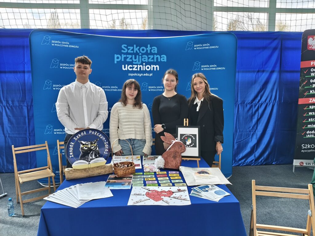 Nasze stoisko cieszyło się dużym zainteresowaniem – uczniowie mieli możliwość zapoznać się z kierunkami kształcenia, porozmawiać z nauczycielami, uczniami oraz dowiedzieć się, jak wygląda nauka i życie szkolne w naszej placówce. Rozmowy z byłymi absolwentami Zespołu Szkolno-przedszkolnego w Rąbinie, a dziś uczniami Zespołu Szkół w Połczynie, ich opinie i relacje były najlepszą reklamą Naszej szkoły.