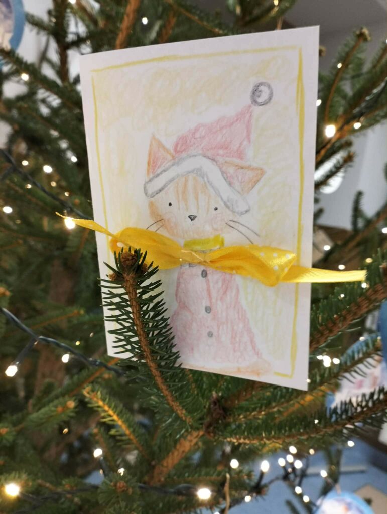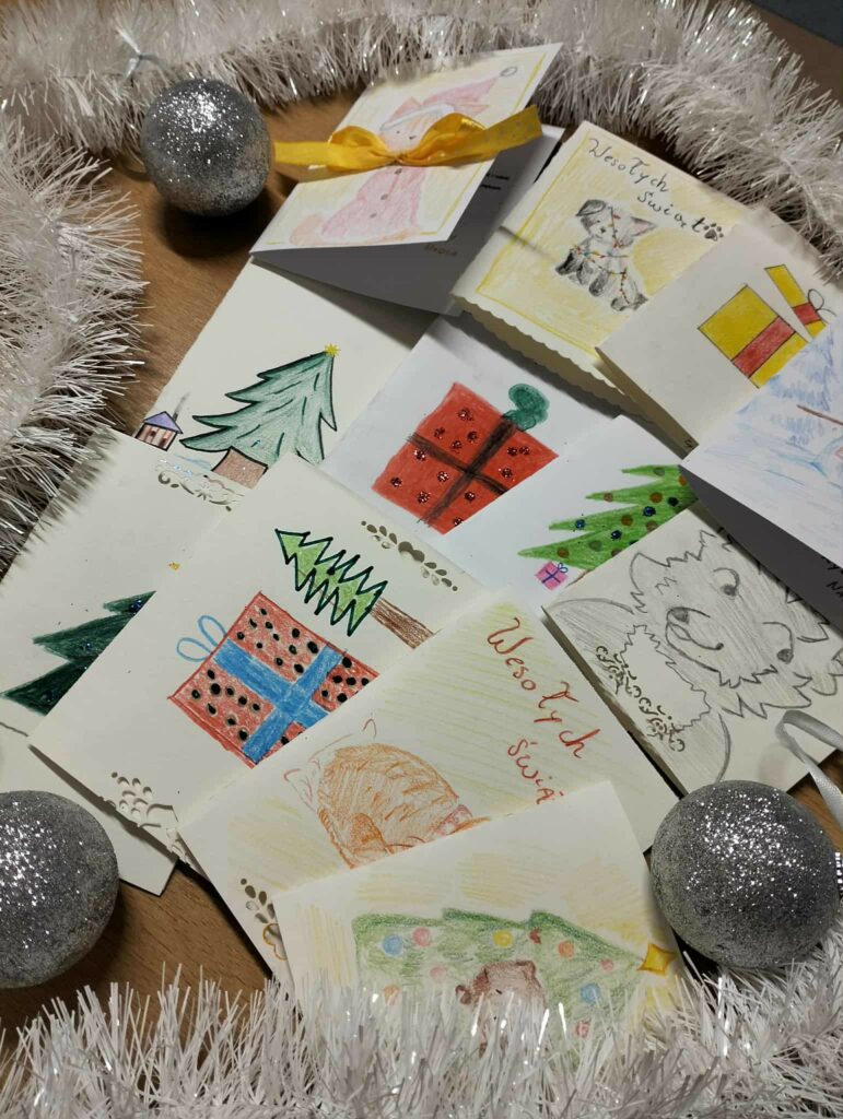 Uczniowie wraz z pedagogiem specjalnym p. Ludmiłą na zajęciach przygotowali kartki świąteczne w ramach akcji ,,Wylosuj Anioła „.
